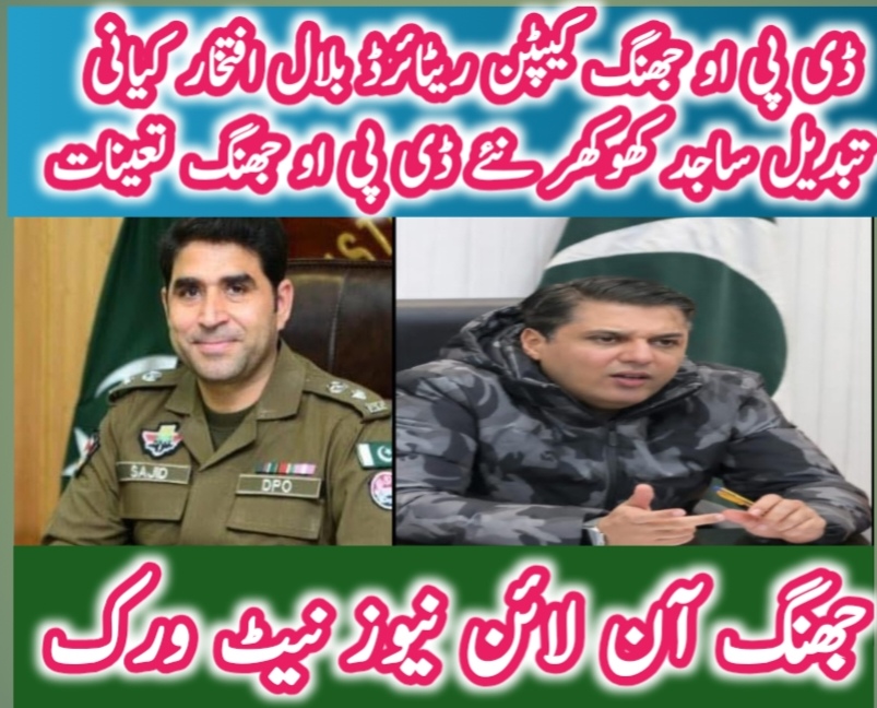 جھنگ (شیخ غلام مصطفیٰ) ڈی پی او جھنگ کیپٹن ریٹائرڈ بلال افتخار کیانی تبدیل ،ساجد کھوکھر نئے ڈی پی او جھنگ تعینات ،رپورٹ حکیم طاہر محمود جنجوعہ