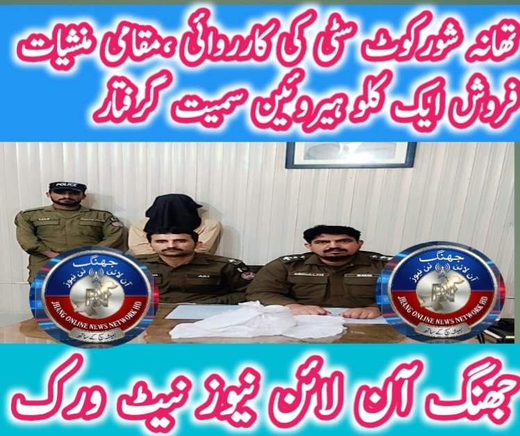 شورکوٹ (شیخ غلام مصطفیٰ ) ایس ایچ او تھانہ شورکوٹ سٹی انسپکٹر حافظ محمد عبداللہ جپہ کی اپنی ٹیم انچارج چوکی شورکوٹ سٹی کے ہمراہ کارروائی، مقامی منشیات فروش ایک کلو سے زائد ہیروئین سمیت رنگے ہاتھوں گرفتار، منشیات فروش معاشرے کے وہ ناسور ہیں جو معصوم شہریوں کی زندگیوں کو تباہی کی جانب دھکیلتے ہیں، ایسے عناصر کسی معافی کے لائق نہیں ہیں، ایس ایچ او حافظ محمد عبداللہ جپہ، رپورٹ رانا محمد شبیر بیوروچیف جھنگ آن لائن نیوز نیٹ ورک