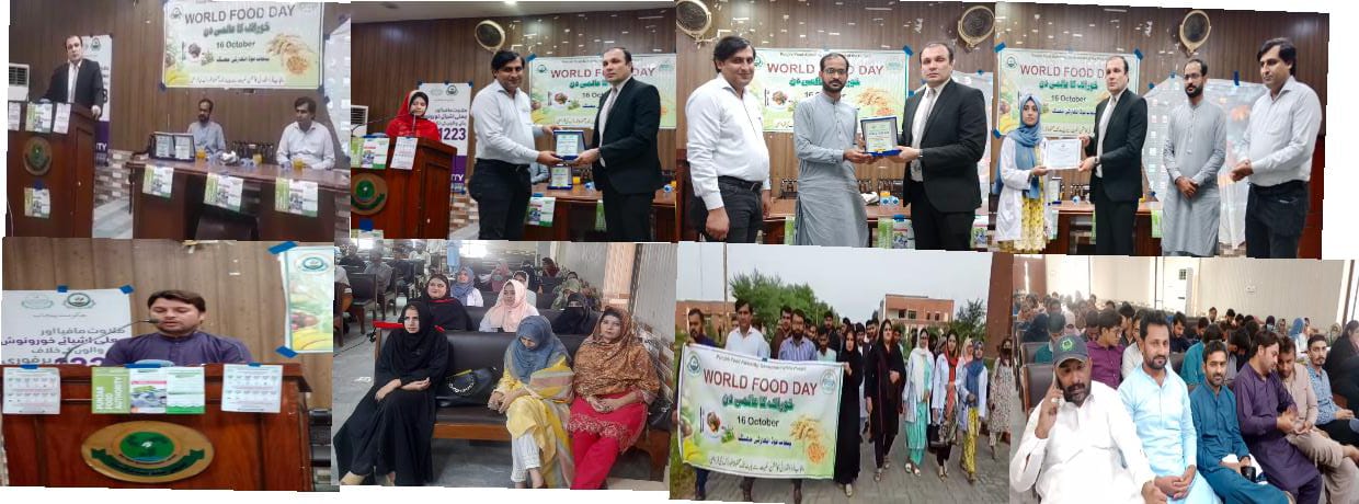 تفصیلات کے مطابق خوراک کے عالمی دن کے موقع پر پنجاب فوڈ اتھارٹی جھنگ اور یونیورسٹی آف ویٹرنری اینڈ اینیمل سائنسز جھنگ کیمپس کے اشتراک سے ڈسٹرکٹ کونسل جناح حال میں ڈپٹی ڈائریکٹر آپریشنز یاسر مشتاق کی سربراہی میں سیمینار منعقد کیا گیا۔
