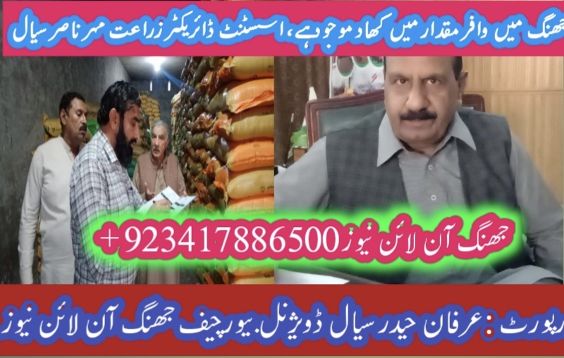 جھنگ (شیخ غلام مصطفٰی) زراعت کا شعبہ ملکی معیشت میں ریڑھ کی ہڈی کی حیثیت رکھتا ہے، کھاد کا مصنوعی بحران پیدا کرنے کیلئے مخصوص مافیا سرگرم عمل ہے، ڈپٹی ڈائریکٹر زراعت ساجد محمود قاسم، جھنگ میں وافر مقدار میں کھاد موجود ہے، اسسٹنٹ ڈائریکٹر زراعت مہر ناصر سیال کی میڈیا سے غیر رسمی گفتگو، رپورٹ عرفان حیدر سیال ڈویژنل بیورچیف جھنگ آن لائن نیوز