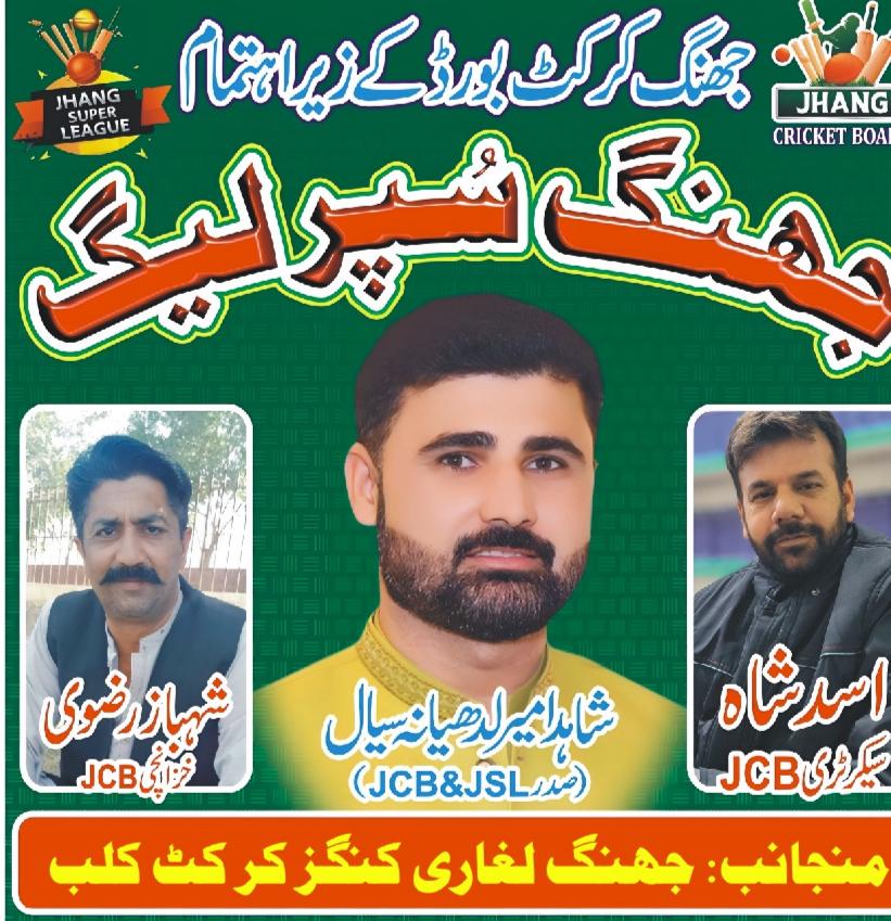 جھنگ میں ٹیپ بال کرکٹ بورڈ کا قیام عمل میں آ چکا ہے جس کے صدر شاہد امیر لدھیانہ، جنرل سیکرٹری سید اسد عباس بخاری اور نائب سیکرٹری سید شہباز رضوی ہیں۔ جھنگ کرکٹ بورڈ کے زیر اہتمام جھنگ کی تاریخ کی سب سے بڑی اور پہلی لیگ جھنگ سپر لیگ کے نام سے 28 دسمبر 2023 کو ہونے جا رہی ہے-