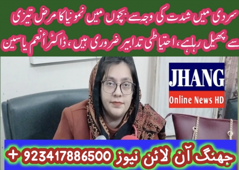 شورکوٹ (مہرریاض موہانہ سے)شورکوٹ سردی کی شدت میں اضافہ کی وجہ سے بچوں میں نمونیا کا مرض تیزی سے پھیل رہا ہے اس حوالہ سے کیئر بہت ضروری ہے ڈاکٹر انعم یاسین میڈیکل آفسیر تحصیل ہیڈ کوارٹر ہسپتال شورکوٹ نے اس حوالہ سے آگاہی دیتے ہوے کہا کہ والدین خشک سردی میں اپنے بچوں کو سویٹر جرسی گرم کپڑوں کا استعمال کروائیں –