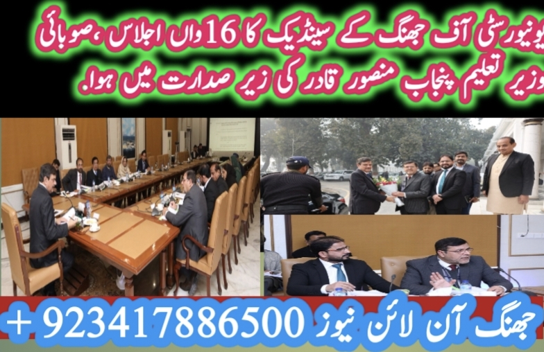 یونیورسٹی آف جھنگ کی سنڈیکیٹ کا 16واں اجلاس،صوبائی وزیربرائے اعلیٰ تعلیم پنجاب منصور قادر کی صدارت میں منعقد ہوا
