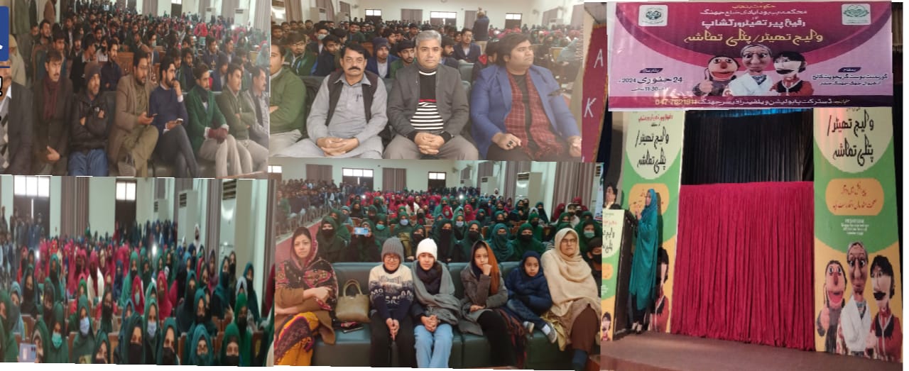 جھنگ , ڈائریکٹر جنرل پاپولیشن ویلفیئر ڈیپارٹمنٹ پنجاب ثمن رائے کی ہدایات کی روشنی میں فیملی پلاننگ کی آگاہی مہم کے سلسلہ میں ڈسٹرکٹ پاپولیشن ویلفیئر آفس جھنگ نے رفیع پیر تھیٹر ورکشاپ کے تعاون سے گورنمنٹ پوسٹ گریجوایٹ کالج جھنگ میں محکمہ کے سلوگن”متوازن خاندان. . . خوشحال پاکستان”تعلیم یافتہ ماں۔۔۔۔تعلیم یافتہ معاشرہ” سلسلہ میں پتلی تماشہ کا انعقاد کیا ۔ اس پتلی تماشہ ورکشاپ کا مقصد طلباء و طالبات کو محضوظ کرنے کے ساتھ ساتھ ایک پیغام کے طور پر پیش کیا گیا کہ بڑھتی ہوئی آبادی کس طرح ہمارے ملک کیلئے زہر قاتل ثابت ہورہی ہے اور اس کے علاوہ بچیوں کی تعلیم ہمارے معاشرے کیلئے کس قدر اہمیت کی حامل ہے بیٹا ہو یا بیٹی دونوں کو معاشرے کا بہترین رکن بنانے کیلئے تعلیم بہت ضروری یے اس آگاہی ورکشاپ کے پروگرام میں ڈسٹرکٹ پاپولیشن ویلفیئر آفیسر جھنگ فیاض احمد چوہدری،ڈپٹی ڈسٹرکٹ پاپولیشن ویلفیئر آفیسر سملی پروین،پرنسپل گورنمنٹ پوسٹ گریجوایٹ کالج جھنگ مہدی حیات علیانہ،انگریزی ڈیپارٹمنٹ کے پروفیسر ریحان خلیل،سوشل ایکٹیوسٹ اور سیکرٹری ڈسٹرکٹ پریس کلب جھنگ ڈاکٹر مہر محمد ریاض نول سمیت پروفیسرز اور طلباء و طالبات کی کثیر تعداد نے شرکت کی ۔اس موقع پر رفیع پیر تھیٹر کے معروف آرٹسٹ اور فنکار مشتاق سندھی نے ہمراہ اپنی ٹیم کے محکمہ بہبود آبادی کے سلوگن کو مدنظر رکھتے ہوئے فیملی پلاننگ،متوازن خاندان،بڑھتی ہوئی آبادی سے معاشرتی مسائل اور ماں اور بچے کی صحت سمیت بچیوں کی تعلیم کی افادیت کے متعلق پتلی تماشہ کے زریعے بہترین میسج دیا جس سے ایسا پروگرام دیکھ کر طلباء و طالبات بہت لطف انداز بھی ہوئے۔ اس موقع پر ڈسٹرکٹ پاپولیشن ویلفیئر آفیسر فیاض احمد چوہدری نے اپنے پیغام میں کہا کہ شرح آبادی میں اضافہ اور تولیدی صحت کے متعلق عوام میں زیادہ سے زیادہ آگاہی پیدا کریں اور لوگوں میں تولیدی صحت اور بڑھتی ہوئی آبادی کے مسئلے کو اجاگر کریں ۔ خاندان کی صحت اور تعلیم سے قوم کھڑی ہوتی ہے جس سے پاکستان کو مزید صحت مند اور خوشحال بنایا جاسکتا ہے۔سلمہ پروین نے کہا کہ خاندانی منصوبہ بندی وقت کی اہم ضرورت ہے ۔بچوں کی پیدائش میں وقفہ ماں اور بچوں کی صحت کا ضامن ہے ۔رپورٹ ڈاکٹر غلام اللہ فاروقی