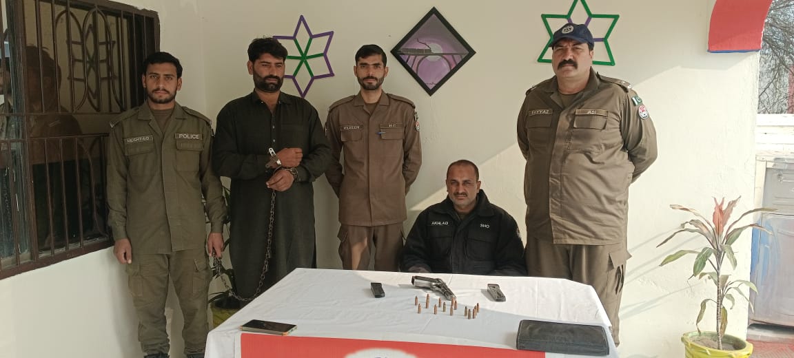 وریام والا شورکوٹ (شیخ غلام مصطفٰی) تھانہ وریام والا چوکی رستم سرگانہ کی کاروائی ،دوران گشت پولیس پارٹی کو دیکھ کر بھاگنے کی کوشش کرنے والے شخص کو گرفتار کرکے دوران تلاشی تیس بور پسٹل مع زندہ گولیاں برآمد کرکے گرفتار کرکے مقدمہ درج کر لیا گیا… شہری ناجائز اسلحہ مت رکھیں، قانون شکن افراد کو ہر صورت میں گرفتار کیا جائے گا، ایس ایچ او تھانہ وریام والا مہر اخلاق احمد نول کی جھنگ آن لائن نیوز سے گفتگو…