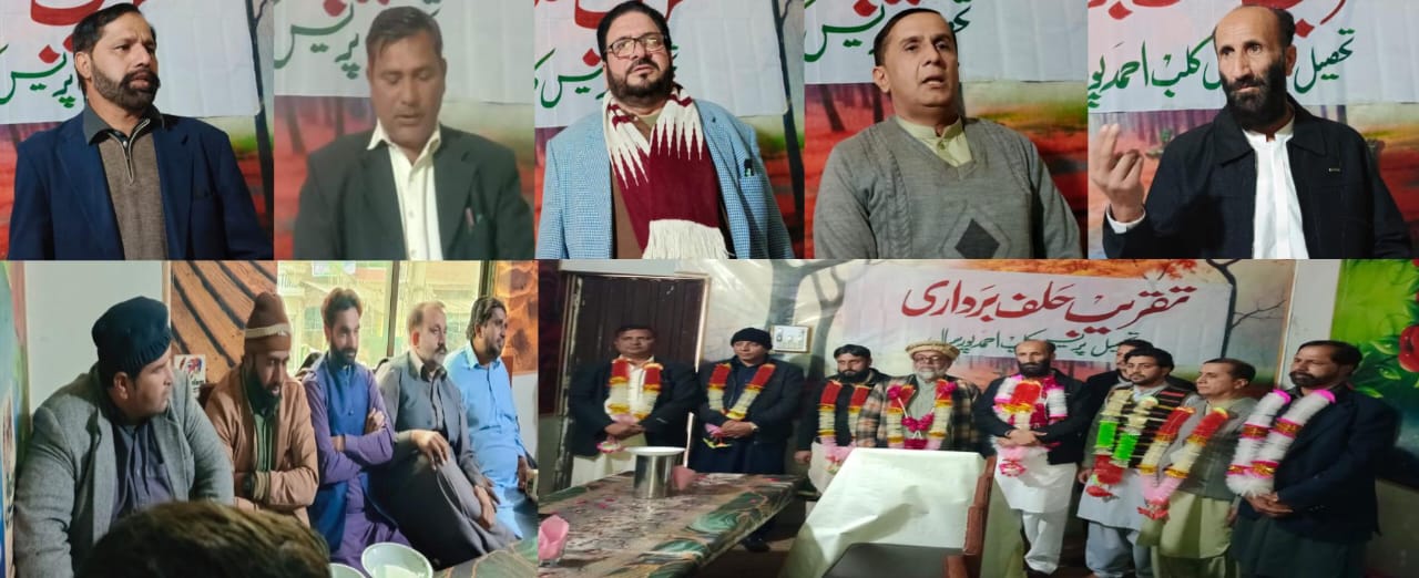 مہمان خصوصی غلام جیلانی آڑھتی نےنو منتخب سرپرست اعلیٰ ملک مجاہد عباس جواد چیئرمین چوہدری جاوید اسلم صدر حبیب منظر جنرل سیکریٹری تنویر حسین سے منصفانہ زمہ داریاں نبھانے کا حلف لیا راہنما پاکستان مسلم لیگ ن سردار محمد عارف کشمیری نے خطاب کرتے ہو کہا کہ ہم امید کرتے ہیں کہ نئی منتخب ہونے والی کابینہ ترجیح بنیادوں پر علاقے کے مسائل اجاگر کر کے مسائل حل کروانے میں اہم کردار ادا کرئے گی –