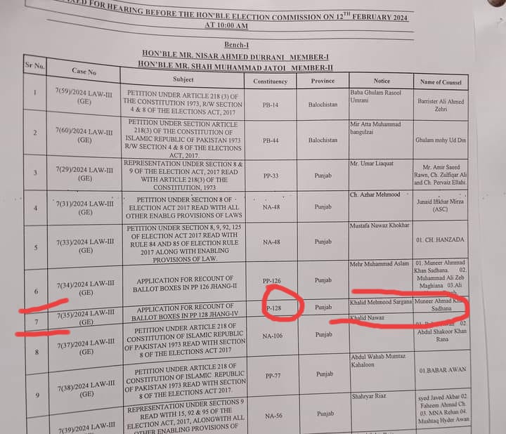 حلقہ پی پی 126 سے مہر محمد اسلم بھروانہ اور پی پی 128 مہر خالد محمود سرگانہ نے عدالت سے رجوع کر لیا….دونوں شکایت کنندگان نے 15 فروری تک سٹے لے لیا ہے…
