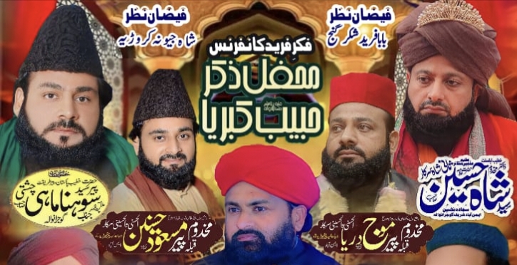 جھنگ : حویلی بہادر شاہ موضع پیپل والا میں فکر فرید کانفرنس محفل ذکر حبیب کبریا بمقام پیپل والا حویلی بہادر شاہ جھنگ 5 مارچ بروز منگل بعد از نماز عشاء اس محفل میں ملک بھر کے علماء کرام اور نعت خوان حضرات تشریف لا رہے ہیں سب مسلمانوں کو شرکت کی دعوت دی جاتی ہے ۔لنگر کا وسیع انتظام ہوگا –