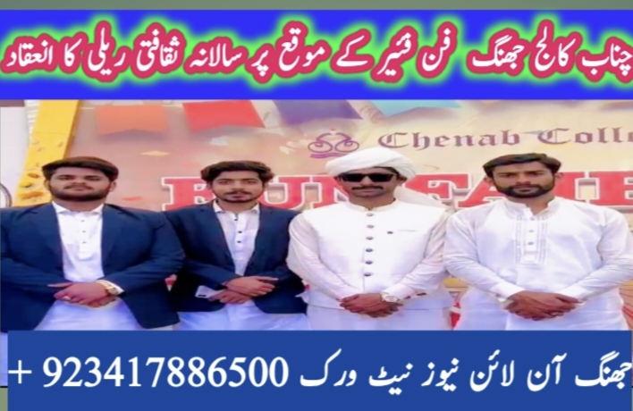 *جھنگ چناب کالج فن فیرکے دن کے موقع پر سالانہ ثقافتی ریلی کا انعقاد کیا گیا* ( )جھنگ ہر سال کی طرح اس سال بھی چناب کالج جھنگ کے فن فیر دن کے موقع پر سالانہ ثقافتی ریلی نکالی گئی۔