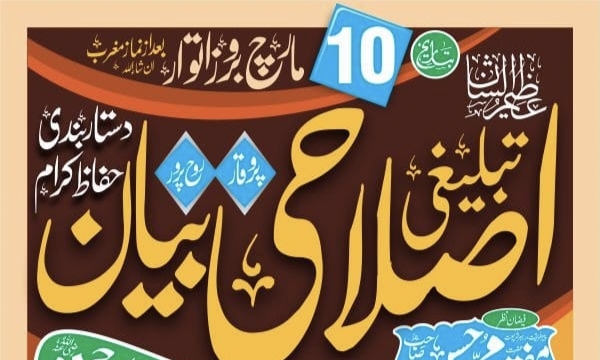 جس میں پیر طریقت رہبر شریعت ولی کامل حضرت مولانا محمد نواز نقشبندی آف ملتان اصلاحی بیان فرمائیں گے ،تمام اہل اسلام سے شرکت کی اپیل ہے خواتین کیلے باپردہ علیحدہ انتظام ہوگا-