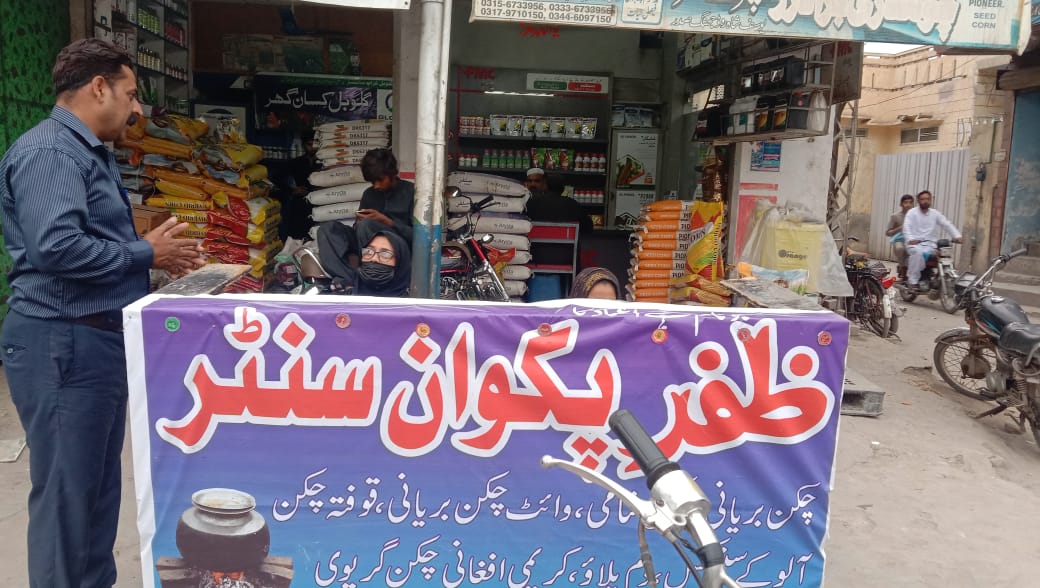 یوسف شاہ روڈ نزد چوہدری ملک پوائنٹ کے ساتھ چوہدری اکرام صاحب کی سپرے ایجنسی کے بالکل سامنے ایک خاتون گھر میں بنائی ہوئی بریانی فروخت کرتی ہیں۔ کل ان سے گفتگو کرنے کا موقع ملا ، انکے خاوند وفات پا چکے ہیں جسکی وجہ سے وہ اپنے بچوں کا پیٹ پالنے کیلئے گھر میں ہی مختلف قسم کے سالن وغیرہ بنا کر مختلف محلہ جات اور مختلف گھروں میں فروخت کرتی تھیں لیکن ماہ رمضان المبارک کی وجہ سے انکی سیل میں کمی آئی تو وہ ہمت کر کے یوسف شاہ روڈ پر ایک کاؤنٹر لگا کر بریانی فروخت کرنے لگیں ۔