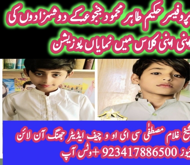 کہ میرے دو بیٹوں عثمان طاہر جنجوعہ ابو ہریرہ طاہر جنجوعہ نے کلاس چہارم اورکلاس سکس میں پوزیشن حاصل کر کے اساتذہ کرام اور والدین کا نام روشن کیا جس پر میں انہیں اپنی طرف سے اور علاقے کی طرف سے سلام اور مبارکباد پیش کرتا ہوں –