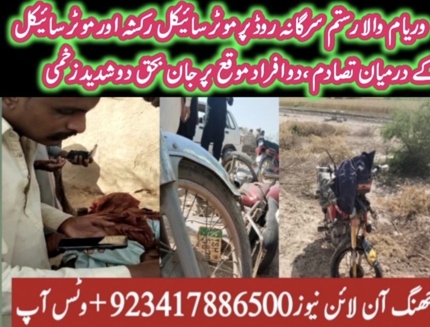وریام والا شورکوٹ (شیخ غلام مصطفٰی) وریام والا رستم سرگانہ روڈ پر دو موٹر سائیکلوں کے درمیان تصادم میں ایک شخص موقع پر جاں بحق، جبکہ خاتون سے دو افراد کی زخمی ہونے کی اطلاع ہے..