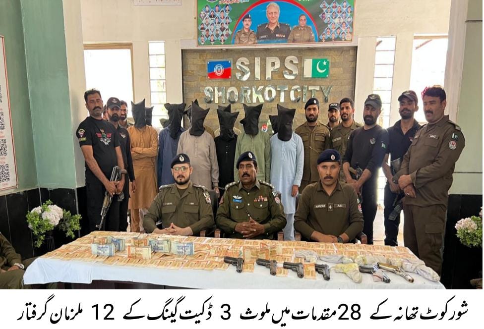 تھانہ شورکوٹ سٹی پولیس کی ڈکیت گینگز کے خلاف بڑی کارروائی ،ڈی ایس پی شورکوٹ مہر محمد حیات سرگانہ اور ایس ایچ او تھانہ شورکوٹ سٹی فیصل رزاق کاہلوں نے پریس کانفرنس کرتے ہوئے میڈیا نمائندگان کو بتایا ہے کہ 3 ڈکیت گینگز کے 12 ملزمان کو گرفتار کر لیا گیا۔ گرفتار ملزمان سے 25 لاکھ روپے نقدی ، 2 عدد موٹر سائیکل اور 11 پسٹل برآمد کر لیے تفصیلات کے مطابق گرفتار گینگز میں اسد عرف اسدی گینگ ، عبدالرحمان گینگ اور محمد حسین گینگ شامل ہیں ۔ گرفتار ڈکیت گینگز کے ملزمان سے 25 لاکھ روپے نقدی ، 2 عدد موٹر سائیکل اور 11 پسٹل برآمد کئے گئے ہیں۔ ڈکیت گینگز مختلف اضلاع اور شورکوٹ سرکل کے اطراف میں ڈکیتی کی وارداتوں میں ملوث ہیں اس موقع پر ڈی ایس پی شورکوٹ مہر محمد حیات سرگانہ نے بتایا ہے کہ ڈی پی او جھنگ محمد راشد ہدایت نے ڈکیت گینگز کی گرفتاری پر ایس ایچ او تھانہ شورکوٹ سٹی فیصل رزاق کاہلوں ، اے ایس آئی منظر عباس ، اے ایس آئی صدام حسین اور اے ایس آئی اعجاز حسین کو شاباش دیتے ہوئے نقد انعام اور تعریفی سرٹیفکیٹ کا اعلان بھی کیا ہے