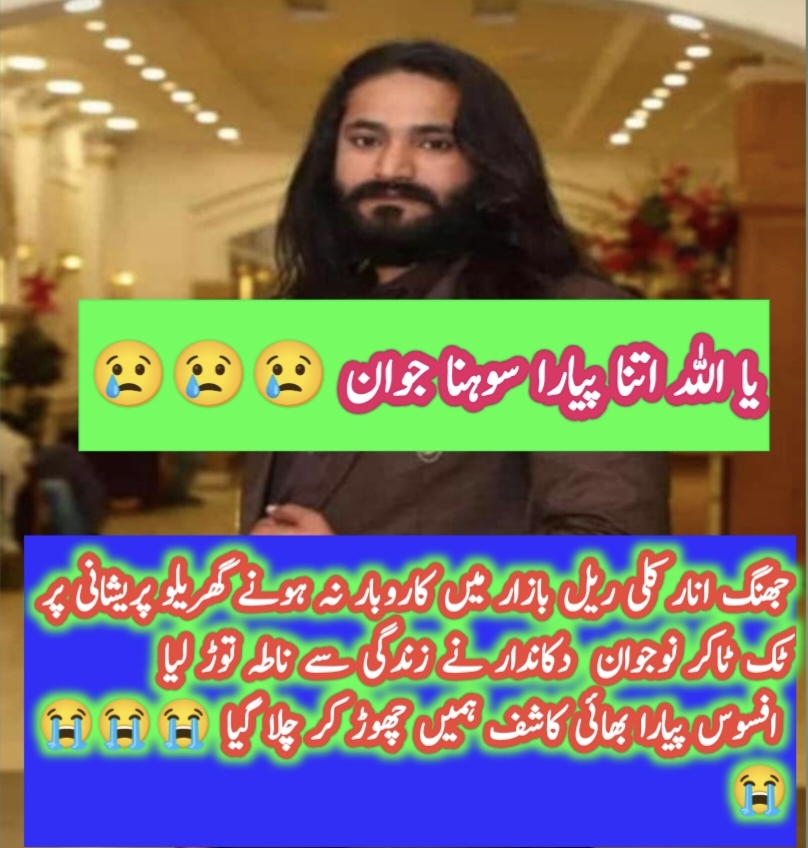 افسوسناک خبر ،جھنگ کے معروف ٹک ٹاکر نے کاروباری پریشانی سے تنگ آکر خود کشی کرلی، علاقہ بھر میں غم کی لہر دوڑ گئی، ورثاء غم سے نڈھال ،رپورٹ ڈاکٹر غلام اللہ فاروقی ،انیس احمد پوری نمائندہ خصوصی جھنگ آن لائن نیوز 28/04/202428/04/2024 by CEO شیخ غلام مصطفی Post Views: 55 جھنگ انار کلی ریل بازار میں کاروبار نہ ہونے گھریلو پریشانی پر ٹک ٹاکر نوجوان دکاندار نے خودکشی کرلی افسوس پیارا بھائی کاشف ہمیں چھوڑ کر چلا گیا