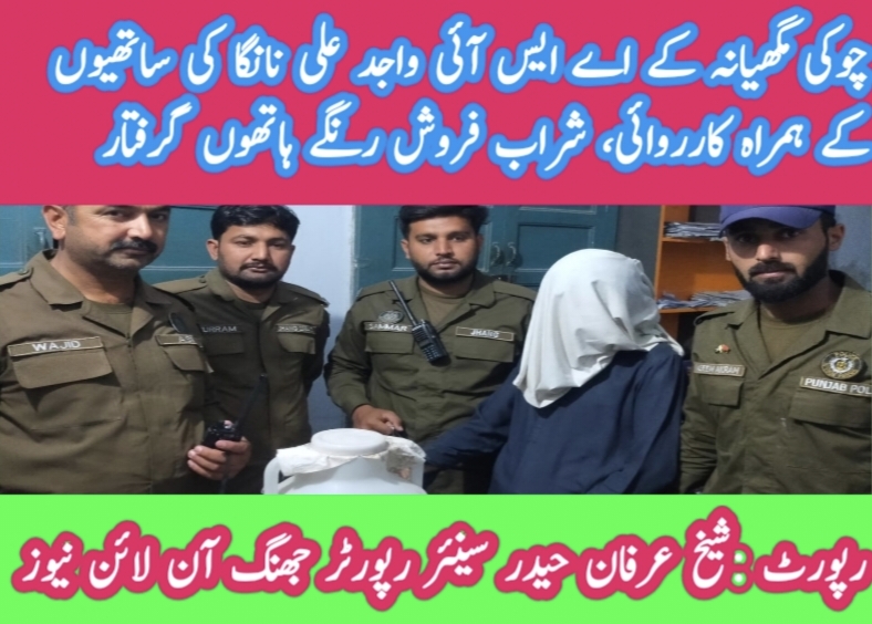 آئی جی پنجاب کے احکامات پر ڈی پی او جھنگ محمد راشد ہدایت کی زیر قیادت چوکی منگھیانہ کے اے ایس آئی واجد علی نانگہ کا ہھراہ شاہھین 4 کے شراب فروشوں کے خلاف سخت کریک ڈاؤن جاری شراب فروش قیصر عباس ولد رشید احمد قوم مغل سکنہ محلہ یوسف آباد رنگے ہاتھوں گرفتار، 12 لیٹر دیسی شراب برآمد کر کے مقدمہ درج کر لیا گیا-