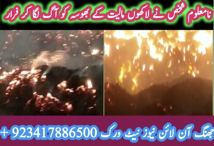 جھنگ: کوٹ بہادر توڑی /بھاسہ کے سٹاک کو آگ لگ گئ لاکھوں روپے کا نقصان