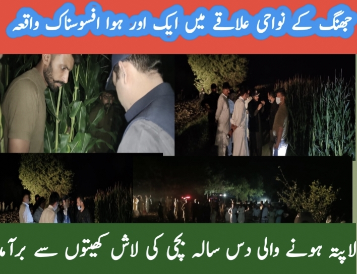 جھنگ : دس سالہ عروج فاطمہ کی نعش گھر سے دور مکئی کے کھیت سے برآمد ہوئی ہے،