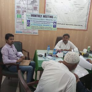 تحصیل اسیسمنٹ بورڈ برائے معذور افراد کا انعقاد تحصیل ہیڈ کوارٹر ہسپتال احمد پور سیال میں ہوا جس کی صدارت ڈاکٹر قاسم عباس ڈپٹی میڈیکل سپرنٹینڈنٹ نے کی جبکہ بورڈ کے دوسرے ممبران میں ڈاکٹر رانا محمد عباس سرجن ، ڈاکٹر عون مزمل آرتھو پیڈک،ڈاکٹر جاوید طاہر چائلڈ سپیشلسٹ, نمائندہ ٹیوٹا نسیم عباس ، سعید قمر خان ، خلیل الرحمٰن سوشل نیڈ آفیسر اور سہیل آرتھر سوشل ویلفئیر آفیسر نے شرکت کی ،بورڈ میں 111 معذور افراد کی مختلف کیٹیگریز کی درخواستیں پیش کی گئیں بورڈ نے 92 افراد کو معذور قرار دیا، , 8 افراد معذوری کی کٹیگری میں نہ آسکے ،4 افراد کو سپیشل رائے کے لئے ریفر کیا گیاجبکہ 7 افراد بورڈ میں حاضر نہ ہوئے اس موقع پر ڈاکٹر قاسم عباس نے بتایا کہ محکمہ صحت پنجاب اور محکمہ سوشل ویلفیئر و بیت المال پنجاب کے تعاون سے تحصیل ہیڈ کوارٹر ہسپتال احمد پور سیال میں باقاعدگی سے ہر مہینے معذور افراد کی اسیسمنٹ کے لیے بورڈ کا انعقاد کیا جا رہا ہے ، سہیل آرتھر سوشل ویلفئیر آفیسر نے بتایا کہ محکمہ سوشل ویلفیئر پنجاب کی طرف سے باقاعدہ معزور افراد کی رجسٹریشن کی جا رہی ہے اسی سلسلہ میں تحصیل احمد پور سیال میں بھی سوشل ویلفئیر آفیسر کے دفتر میں ہیلپ ڈیسک قائم کر دیا گیا ہے اور روزانہ کی بنیاد پر معذور افراد کی آنلائن رجسٹریشن کی جا رہی ، سہیل آرتھر نے مزید بتایا کہ جن افراد کو سرٹیفکیٹ جاری کیے جاتے ہیں ان کو باقاعدہ نادرا دفتر شناختی کارڈ بنوانے کے لے ریفر کیا جاتا ہے ۔