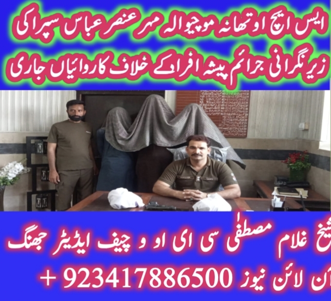 ایس ایچ او تھانہ موچیوالہ مہر عنصر عباس سپرا کی زیر نگرانی سب انسپکٹر شیر افگن ہمراہ نفری کے مخبر کی اطلاع پر افتخار عرف کھارو ولد عبدالغفور قوم مسلم شیخ سکنہ چک نمبر 169 گرواہ جو کہ بدنام زمانہ منشیات فروش ہے کو پل گرواہ سے گرفتار کرکے 1520 گرام چرس –