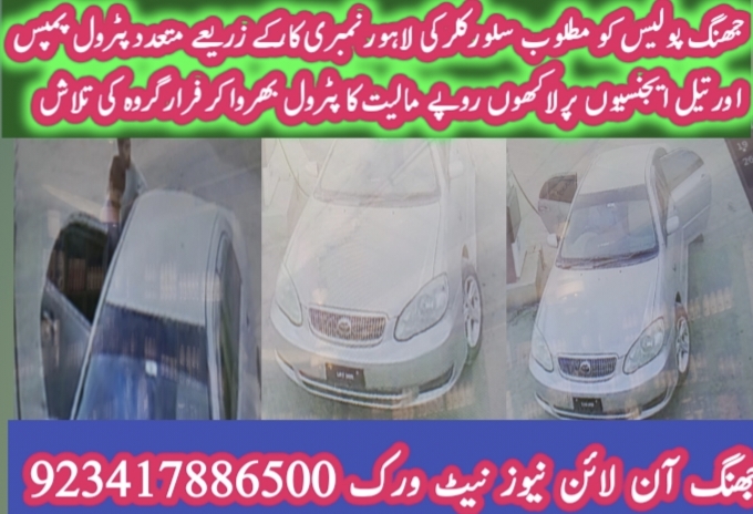 وریام والا جھنگ (شیخ غلام مصطفٰی) 5جون کو علی الصبح سلور کلر کی کار لاہور نمبری 1929 میں سوار ایک گروہ نے تھانہ وریام والا کے علاقے موضع لڈاماہنی میں قطبیہ چوک پر واقع ڈاکٹر یوسف ملیانہ کی پٹرول ایجنسی سے ستر ہزار روپے کا ڈیزل ڈلوایا-