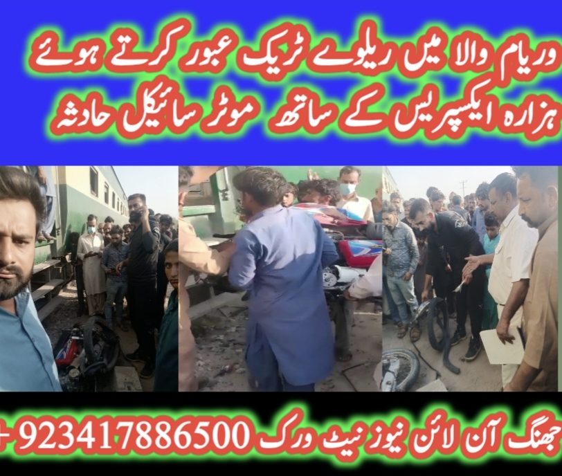 وریام والا شورکوٹ (شیخ غلام مصطفٰی) وریام والا میں آج علی الصبح کری والا کے مقام پر ریلوے ٹریک کو عبور کرنے کی کوشش کرنے والے نامعلوم موٹر سائیکل سوار ٹرین کی زد میں آگئے-