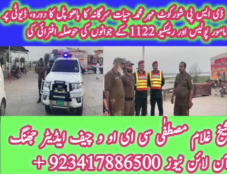 ڈی ایس پی شورکوٹ مہر محمد حیات سرگانہ نے اچانک پتن پل کا دورہ کیا اور ڈیوٹی پر مامور پولیس کے جوانوں اور ریسکیو 1122 شورکوٹ کے جوانوں کو سراہا جو تپتی دھوپ میں اپنے فرائض سرانجام دے رہے تھے –