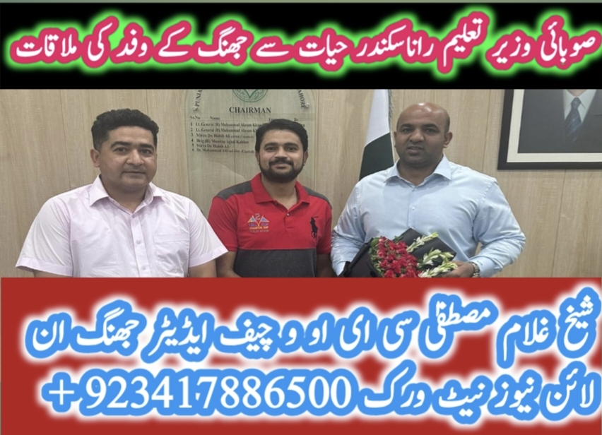 شیخ غلام مصطفیٰ سی ای او و چیف ایڈیٹر جھنگ ان لائن نیوز نیٹ ورک 923417886500 +