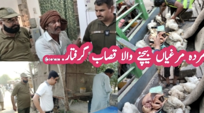 اسسٹنٹ کمشنر شورکوٹ ریٹائرڈ لیفٹیننٹ محمد اسفند یار کی مردہ مرغیاں فروخت کرنے والی دوکان پر چھاپہ شورکوٹ کے نواحی علاقہ دوراں پور پل پر مردہ مرغیاں فروخت کرنے والا قصائی گرفتار مردہ مرغیاں اور گوشت برآمد 8 گھگھ کا رہائشی منیر احمد نامی قصائی مردہ مرغیوں کو ذبح کرکے فروخت کر رہا تھا –