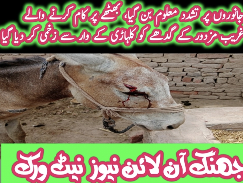 جھنگ (شیخ غلام مصطفیٰ) جانوروں پر تشدد معمول بن گیا ،بھٹھے پر کام کرنے والے غریب مزدور کے گدھے کو کلہاڑی کے وار سے زخمی کر دیا گیا، شہری کا ڈی پی او جھنگ سے نوٹس لینے کا مطالبہ، رپورٹ شیخ عرفان حیدر