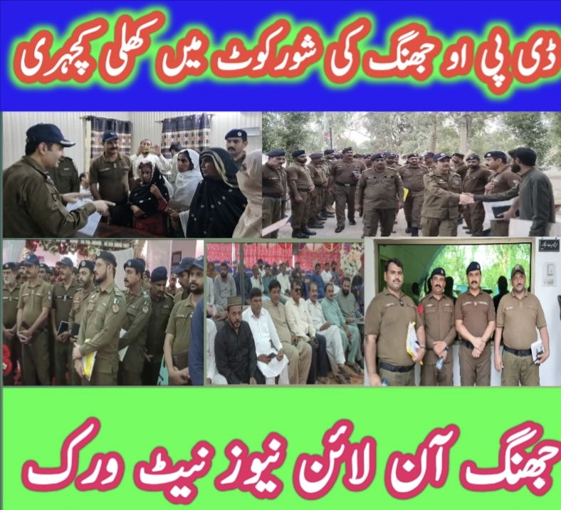 ڈی پی او جھنگ محمد راشد ہدایت نے وزیر اعلیٰ پنجاب مریم نواز کے ویثرن کے مطابق آئی جی پنجاب عثمان انور کی ہدایات پر کھلی کچہری کا انعقاد کیا جس میں ڈی ایس پی سرکل شورکوٹ مہر حیات سرگانہ،ایس ایچ او تھانہ شورکوٹ سٹی فیصل رزاق کاہلوں ،ایس ایچ او تھانہ شورکوٹ کینٹ صہیب فخر قریشی،ایس ایچ او تھانہ وریام انسپکٹر ریاض سپرا،ایس ایچ او تھانہ احمد پور سیال ثمر عباس شاہ،ایس ایچ او تھانہ گڑھ مہاراجہ ذیشان حیدر سیال ، سب انسپکٹر رانا محمد فقیر ، سب انسپکٹر رانا محمد سعید سمیت کثیر تعداد میں پولیس افسران اور سائلین نے شرکت کی-