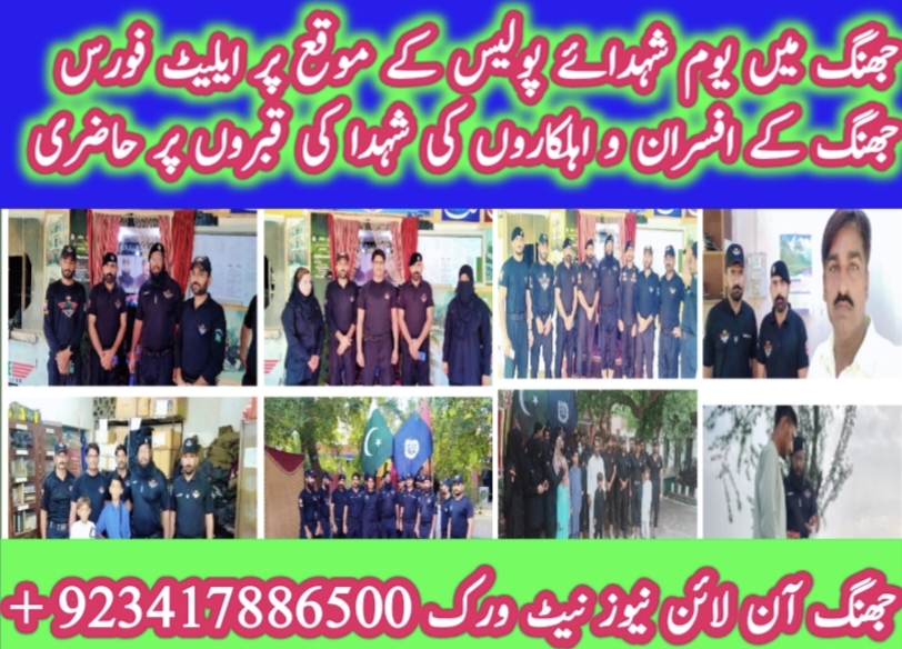 یوم شہداۓ پولیس کے موقع پر جھنگ شہدا کو خراج تحسین پیش کررہے ہیں۔ان کی قبروں پر پھولوں کے ھار چڑھائے گئے۔ اور انکی یاد میں جھنگ شہدا پولیس کی قربانیوں کا تذکرہ کرکے پولیس جوانوں کا جذبہ بڑھا رہے ہیں کہ یہ جوان ہم سے بازی لے گۓ اور اپنی سوہنی دھرتی پر قربان ہو کرہمیں یہ سبق دے گۓ-