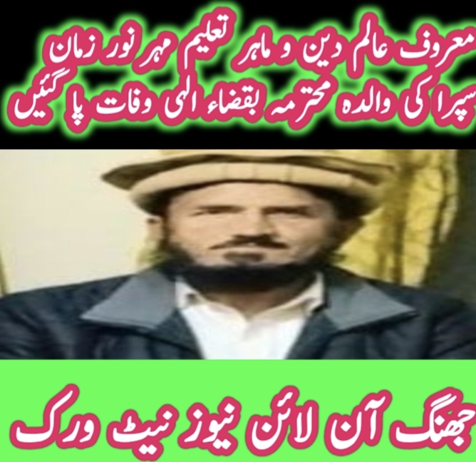 وریام والا ،بستی مہر حاجی عبدالحنان سپرا نزد کری والا وریام والا کے رہائشی ماسٹر مہر نورزمان سپرا امیر جماعت غربا اہلحدیث ضلع جھنگ مہر محمد اکرم سپرا معروف بزنس مین مہر محمد افضل سپرا کی والدہ مہر محمد اسلم سپرا ایڈووکیٹ کی دادی انتقال کر گئی-