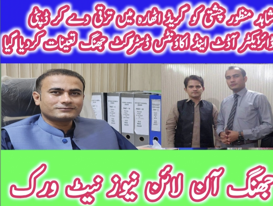 رپورٹ (عرفان حیدر سیال / ڈویثزنل بیوروچیف )شاہد منظور چشتی کو گریڈ اٹھارہ میں ترقی دے کر ڈپٹی ڈائریکٹر آڈٹ اینڈ اکاؤنٹس ڈسٹرکٹ جھنگ تعینات کر دیا گیا۔ انہیں ضلع جھنگ کے لوکل گورنمنٹ اداروں کے ساتھ ساتھ یونیورسٹی آف جھنگ کے آڈٹ اور اکاؤنٹس کے جملہ امور کا اختیار بھی سونپ دیا گیا ہے۔