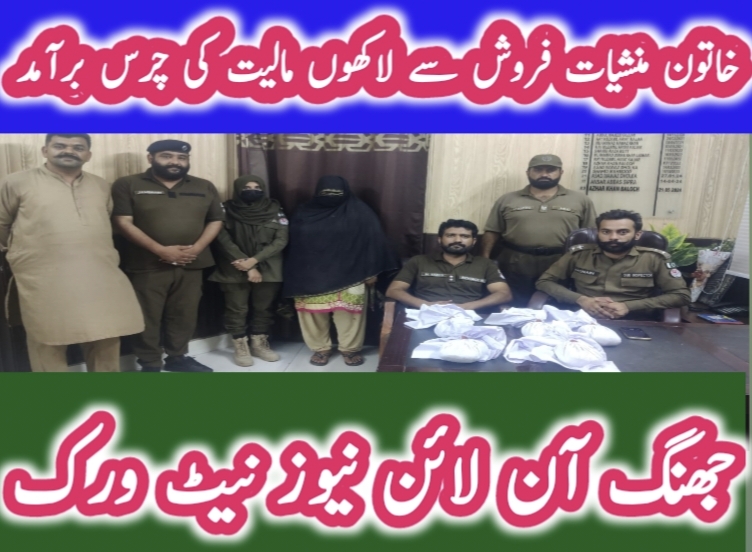 تفصیلات کے مطابق انچارج چوکی سول لائن سب انسپکٹر حسنین عباس نے پولیس ملازمین پر مشتمل ٹیم مظہر ،حسنین شاہ ،قمر زمان ،کامران ،لیڈی کانسٹیبل لیلیٰ قیصر کے ہمراہ مخبر کی اطلاع پر بروقت کارروائی کرتے ہوئے چھاپہ مار کر مریم بی بی زوجہ وحید مراد سکنہ محلہ لدھن شاہ جھنگ صدر کو گرفتار کر کے اس کے قبضہ سے 5 کلو 870 گرام چرس برآمد کر کے مقدمہ درج کر لیا –