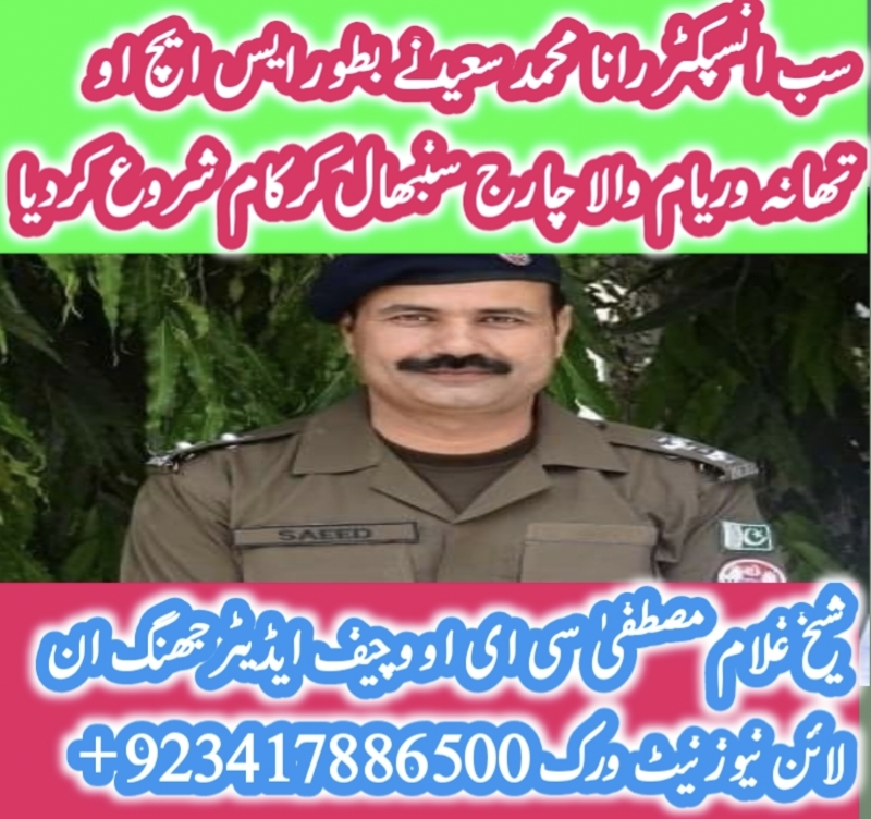 شورکوٹ (رانا محمد شبیر بیوروچیف) ڈسٹرکٹ پولیس آفیسر جھنگ کیپٹن ( ر) بلال افتخار کیانی نے جھنگ پولیس کے دبنگ پولیس افسر پی ایس او ٹو ڈی پی او جھنگ سب انسپکٹر رانا محمد سعید کو ایس ایچ او تھانہ وریام والا تعینات کر دیا، جنہوں نے اپنے عہدے کا چارج سنبھال کر کام شروع کر دیا –