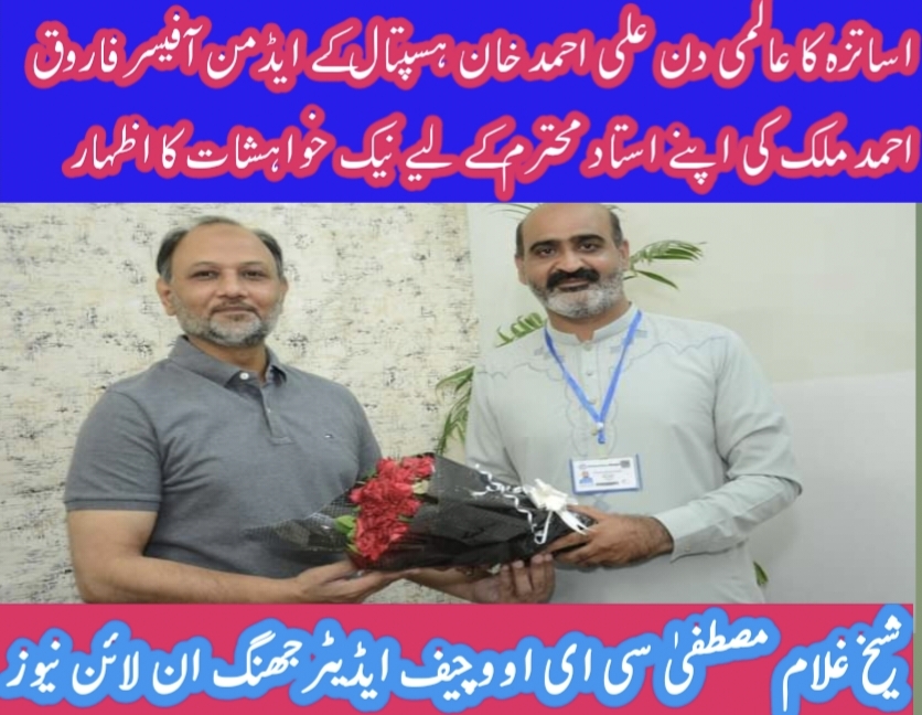 جھنگ – علی احمد خاں ہسپتال کے ایڈمن آفیسر فاروق احمد ملک نے اساتذہ کے عالمی دن کے موقع پر اپنے استاد محترم ڈاکٹر سہیل فاروق ملک صاحب