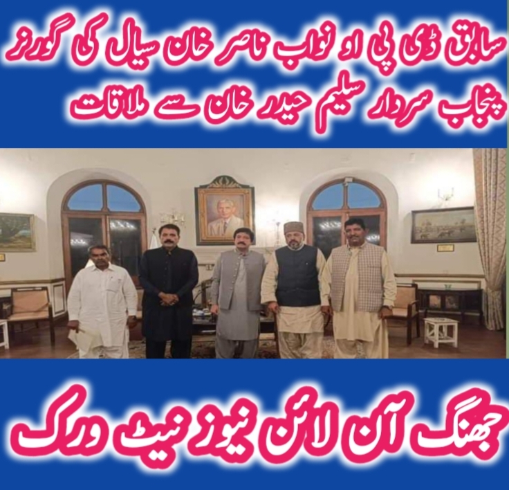 جھنگ :نواب ناصر خان سیال ایکس ڈی پو او کی گورنر ہاؤس لاہور میں گورنر پنجاب سردار سلیم حیدر خان پاکستان پیپلز پارٹی سے سیاسی و سماجی امور کے حوالہ سے اہم ملاقات کی گی ۔