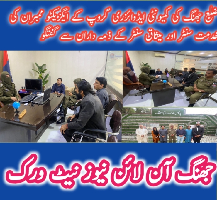 جھنگ:سوشل یوتھ کونسل آف پیٹریاٹس (SYCOP) نے “سماجی ہم آہنگی کے فروغ” کے منصوبے کے تحت ضلع جھنگ میں کمیونٹی ایڈوائزری گروپ کے ایگزیکٹو ممبران کے ہمراہ خدمت سنٹر اور میثاق سنٹر کے ذمہ داران میڈم زروہ،ہارون مسیح انچارج میثاق سنٹر کے ساتھ ایک اہم ملاقات کی۔