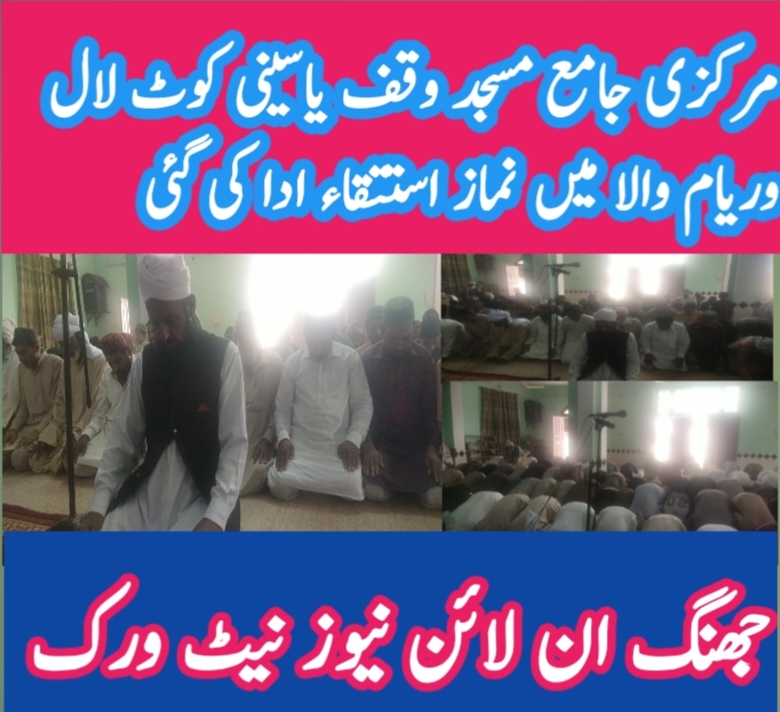 وریام والا جھنگ (شیخ غلام مصطفیٰ) حکومت پنجاب سیکرٹری محکمہ اوقاف حکومت پنجاب سید طاہر رضا بخاری کی ہدایت پر جامع مسجد وقف یاسینی کوٹ لال وریام والا ضلع جھنگ میں نماز استتقاء ادا کی گئی –