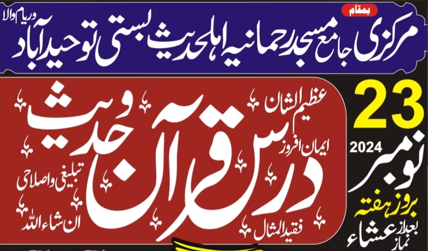 تاکہ ہم دین حنیف سے جڑے رہیں ہماری نوجوان نسل کو قرآن و حدیث سے محبت ہو تمام احباب سے گزارش ہے کہ وقت مقررہ پر تشریف لائیں اور اپنے قلوب کو قرآن کے نور سے منور کریں اسی میں ہی ہم سب کی نجات ہے اللہ کریم ہمیں دین حنیف سمجھنے کی توفیق عطا فرمائے آمین-