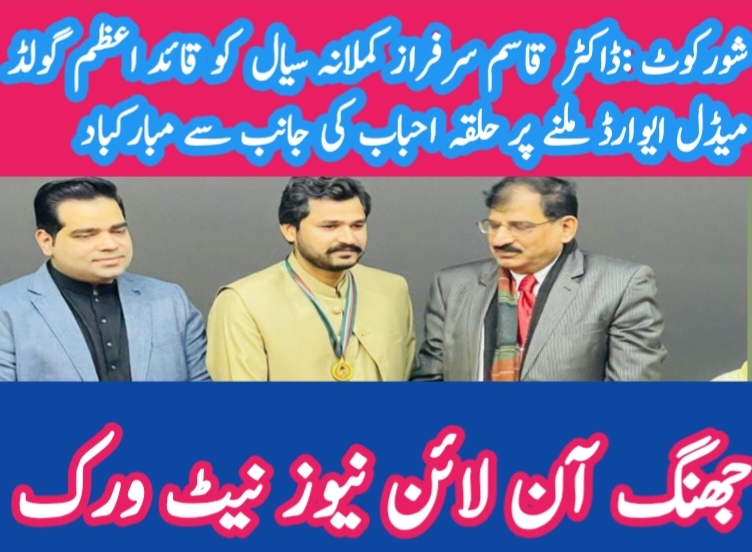 شورکوٹ( ) شورکوٹ کے انسانیت دوست فرض شناس ڈاکٹر قاسم سرفراز کملانہ کو قائد اعظم گولڈ میڈل ایوارڈ سے نواز گیا۔