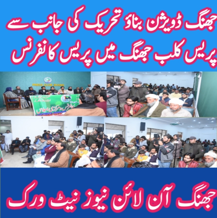 جھنگ کو ڈویژن کے اسٹیٹس سے محروم رکھنا ناانصافی ہے عمیر الغزالی۔جھنگ ڈویژن بناؤ تحریک کی قیادت نے جھنگ پریس کلب میں پر ہجوم کانفرنس کرتے ہوئے جھنگ کو ڈویژن بنانے کا مطالبہ کردیا اس پریس کانفرنس میں مولانا عمیر الغزالی ،مدنی خان بلوچ ،مولانا عبد الواحدصدیقی،مولاناعرفان نجمی،ناصر علی،نعمان گل،عبد القیوم انصاری،سرفراز انصاری ،رانا رئیس احمد ،مولاناالیاس طاہر ،ملک ابرارتبسم ،اشتیاق منہاس،عمران شاہد،عروج فاطمہ،مفتی حسن،نزاکت خان بلوچ،شیخ سعد اعظم شیخ انیس احمد پوری ،سردارذوالفقار خان اور دیگر نے شرکت کی ۔