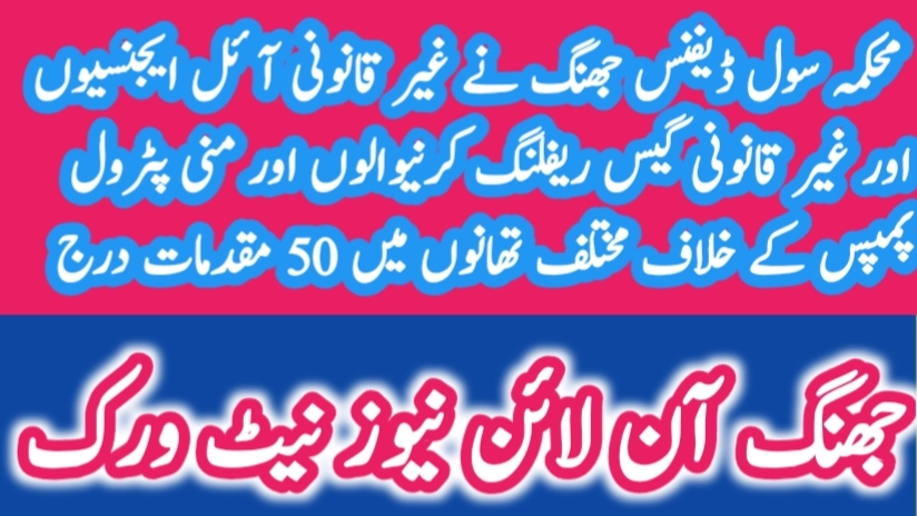 جھنگ(عرفان حیدر سیال / بیوروچیف )ڈائریکٹر سول ڈیفنس پنجاب لاہور ضمیر حسین اور ڈپٹی کمشنر جھنگ علی اکبر بھنڈر کی ہدایت کے مطابق محکمہ سول ڈیفنس جھنگ نے سال 2024 میں غیر قانونی آ ئل ایجنسیوں اور غیر قانونی گیس ریفلنگ کرنیوالوں اور منی پٹرول پمپس کے خلاف مختلف تھانوں میں 50 مقدمات درج کروائے گئے-