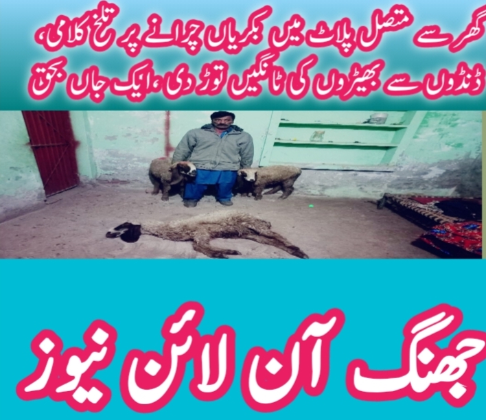 جھنگ بائی پاس بھکر روڈ پر گھر سے متصل پلاٹ میں بکریاں چرانے پر تلخ کلامی،نور نول نامی شخص مشتعل ہو کر بھیڑوں کو مارنا شروع کر دیا، ایک جان بحق دیگر شدید زخمی، رپورٹ محسن علی شاہ