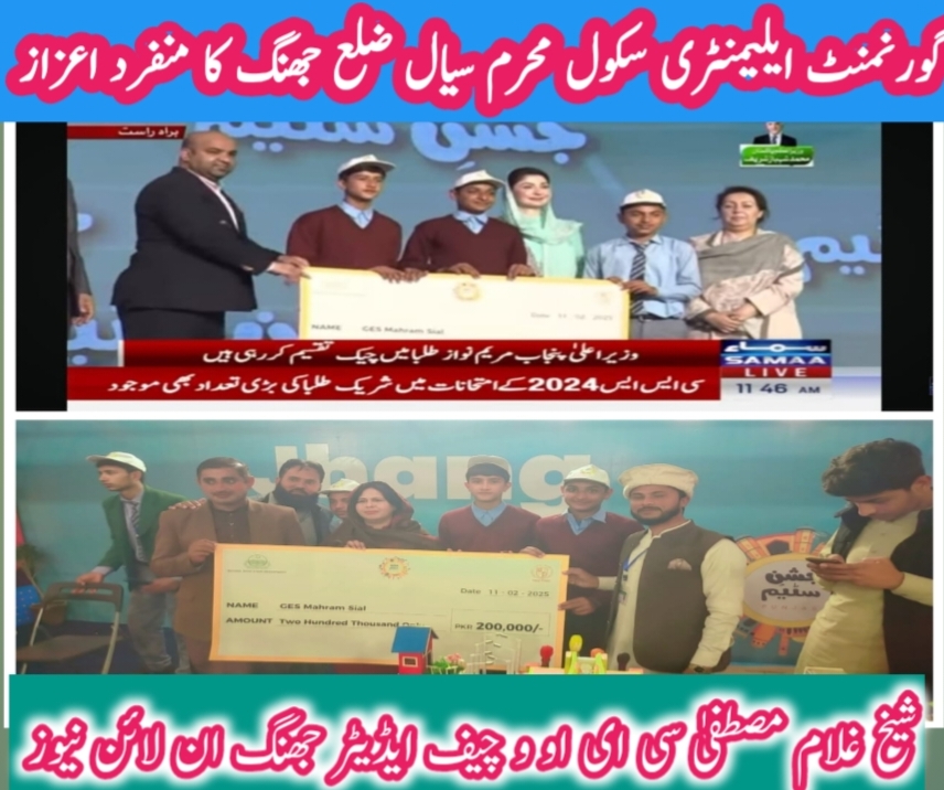 جس کا سہرا ڈی سی صاحب جھنگ سی ای او ایجوکیشن ڈی ای او ایجویشن ڈپٹی ایجوکیشن اے ای او ایجوکیشن اور ہیڈ ماسٹر و سٹاف ادارہ کو جاتا ہے گورنمنٹ ایلیمنٹری سکول محرم سیال کی ٹیم نے وزیراعلی مریم نواز صاحبہ سے اول نام دو لاکھ روپے وصول کیا ہے-