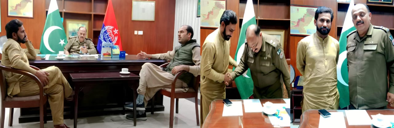 شور کوٹ(ضیغم عباس عاجز سے)ملک ظفر عباس ایس پی انویسٹیگیشن جھنگ سے صدر جناح پریس کلب حاجی سید عون رضا کاظمی کی ملاقات
