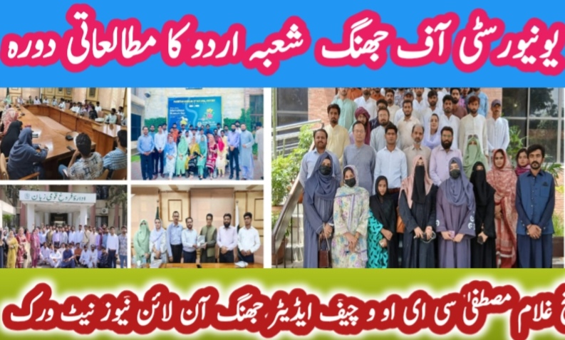جھنگ( شیخ غلام مصطفیٰ ) وائس چانسلر یونیورسٹی آف جھنگ پروفیسر ڈاکٹر فہیم آفتاب صاحب کی خصوصی اجازت سے شعبہ اُردو نے 29 مئی کو اسلام آباد کا مطالعاتی دورہ کیا۔