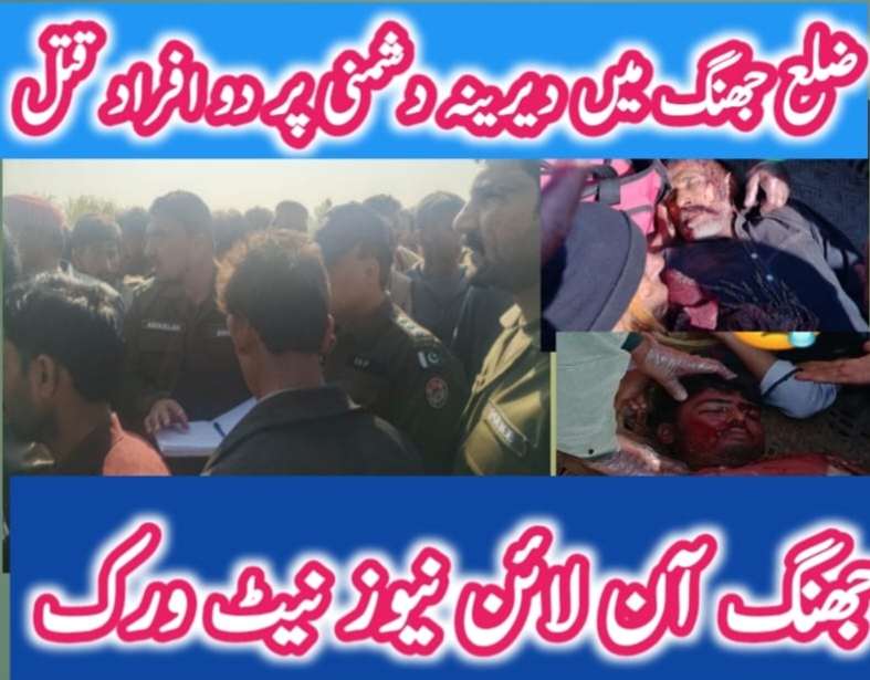 *ضلع جھنگ کے علاقہ فیصل آباد روڈ، اڈا گھنواں کے قریب نول قوم سے تعلق رکھنے والے دو شہریوں کو مبینہ طور پر سابقہ دشمنی کی بنا پر قتل کر دیا گیا۔*
