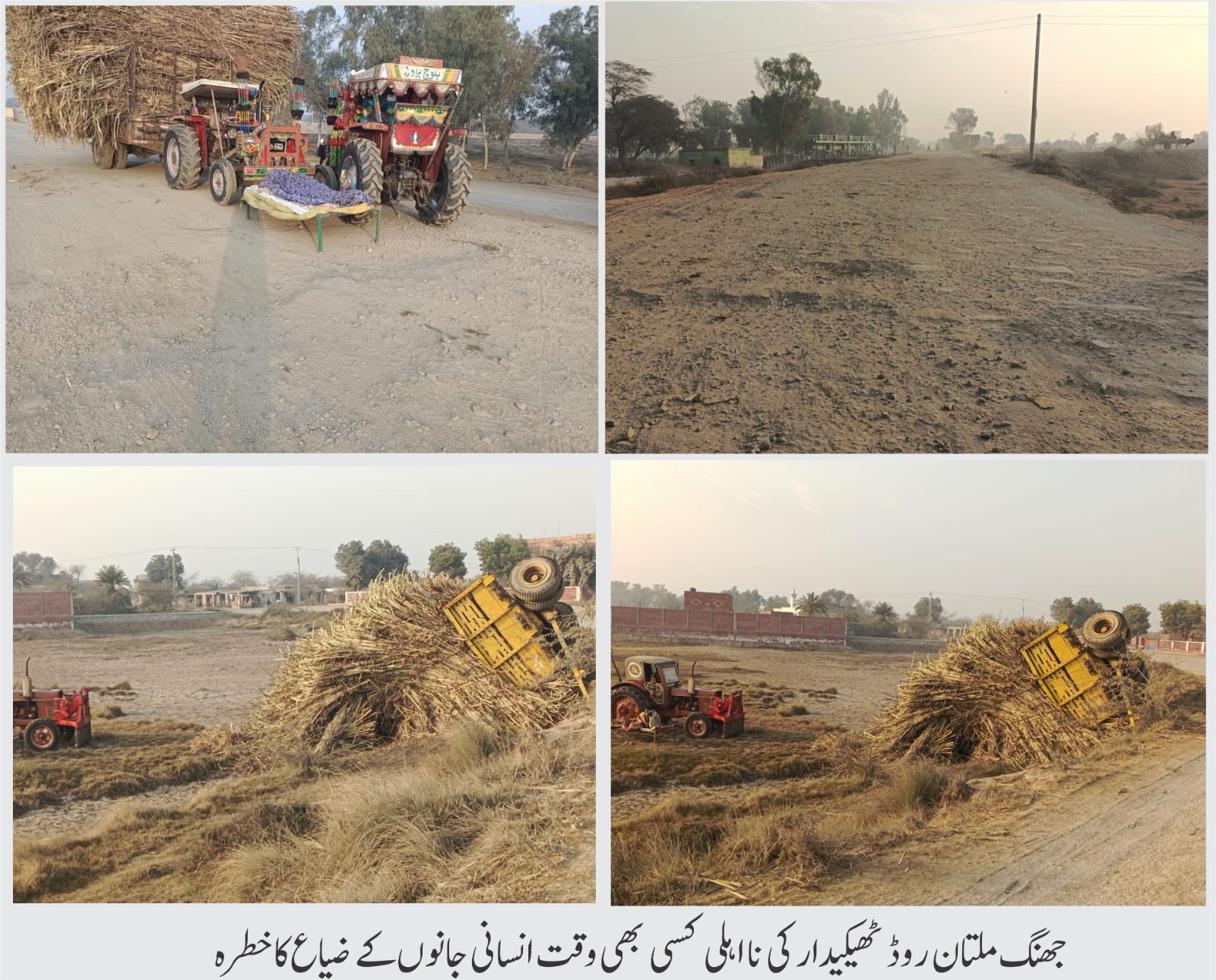 حویلی بہادر شاہ :جھنگ ملتان روڈ حویلی بہادر شاہ کے قریب ٹھیکیدار کی جانب سے ناقص میٹیریل استعمال کرنے کی اطلاعات، شدید ٹوٹ پھوٹ کا شکار روڈ کی مرمت کے بجائے جہاں کچھ بہتر حالت میں سڑک تھی وہاں تعمیر و مرمت شروع کر دی، آئے روز حادثات معمول بن گئے، رپورٹ عمران مجید کرتوانہ، ڈاکٹر غلام اللہ فاروقی